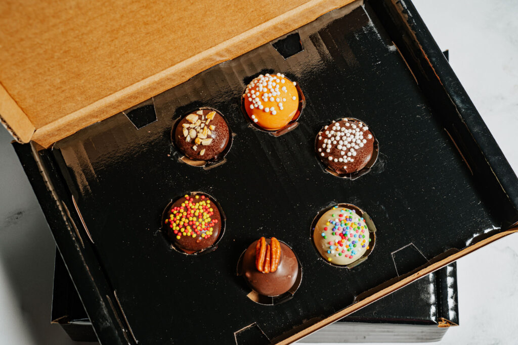 Our high-end, delectable bites show off in six flavor profiles and are available in 6-piece boxes perfect for gifting. Order our sampler pack, customize a pack with your favorite flavors, add custom box decorations, and more! Nut free versions are available upon request.